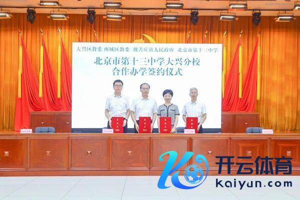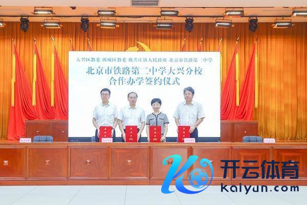 7月30日下昼云开体育,大兴区教委、西城区教委、魏善庄镇政府及北京市铁路第二中学、北京市第十三中学在魏善庄镇政府举行配合办学签约庆典。